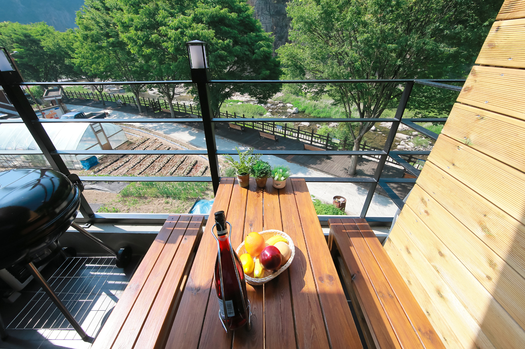아이리스 본문 / 방 정보 객실명 형태(스타일) 크기 인원(기준/최대) 아이리스 커플룸(복층) 평 2/2 가격 정보 비수기 준성수기 성수기 추가요금 주중 금요일 주말 주중 금요일 주말 주중 금요일 주말 70,000원 80,000원 100,000원 80,000원 100,000원 120,000원 150,000원 160,000원 180,000원 15,000원 시설안내 구비용품- TV, 에어컨, 헤어 드라이기, 주방조리기구, 냉장고, 전기밥솥, 전자레인지, 쇼파 전기렌지, 커피포트, 식기류, 침구류 샴푸, 바디워시, 수건, 치약, 티슈 부대시설- 개별바베큐장, 계곡야외데크, 농가맛집 서비스 - WIFI, 객실별 인터넷, 물놀이용품 목록